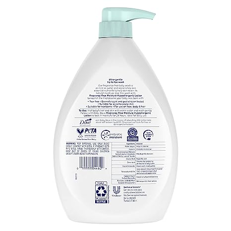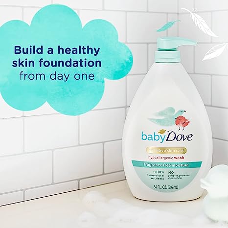 - FROM TIP TO TOE: Baby Dove Fragrance Free Moisture Hypoallergenic Baby Wash (20 oz.) is a gentle, fragrance free baby wash that’s suitable for eczema-prone skin.