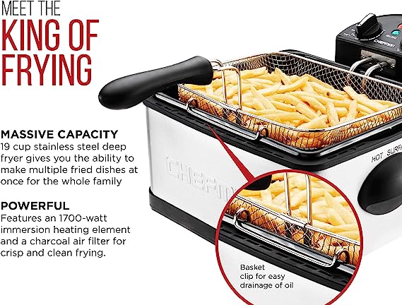 • FRY FOR THE FAMILY: Great for a hungry crowd, this fryer’s 4.5-liter capacity fries large portions of French fries, doughnuts, fried chicken, homemade chips, mozzarella sticks, and more. Throwing a party, having the holidays at your house or just have a love fried food. Make sure this fryer is a part of your cooking plans.