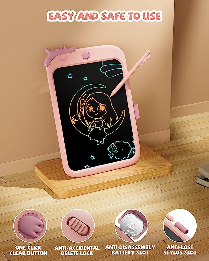 - 💖Eye Protection & No Mess at Home: The advanced colorful LCD writing tablet does not emit dangerous radiation that can damage the eyes. This writing tablet helps you avoid messy cleanups and the use of harmful chemicals. It is environmentally friendly by eliminating the need for paper, chalk, crayons, and pencils. Simply erase your content quickly with one press of the erase button!