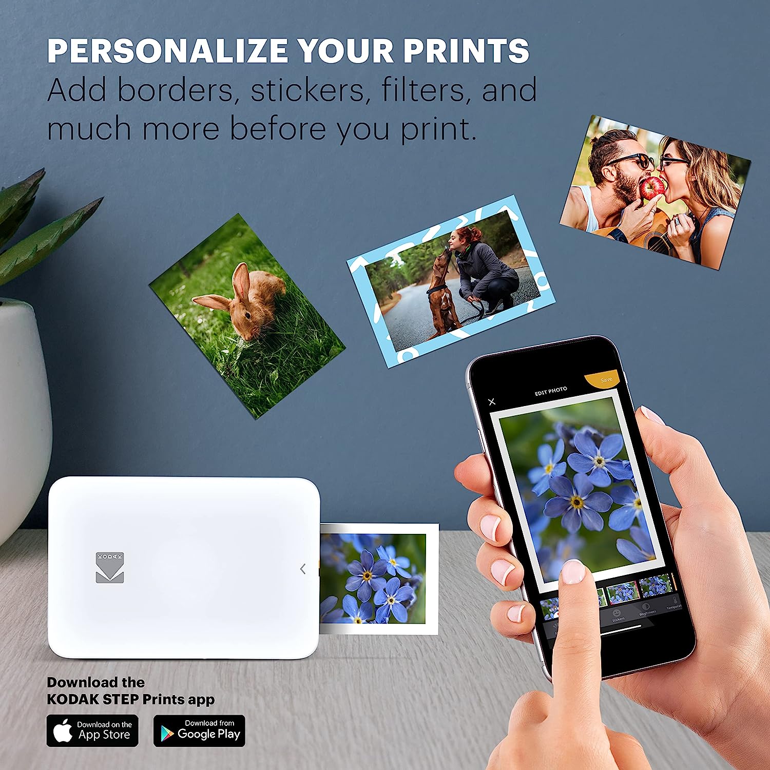 • SHAKE THINGS UP – Connect this printer to the KODAK STEP Prints app on your smartphone. Then, personalize your photos on the free editing app so your pictures really pop. Add frames, stickers, and so much more.